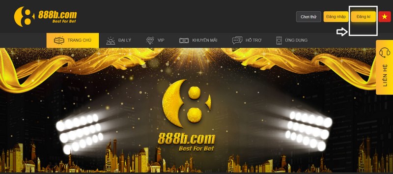 - Bước 1: Vào trang chủ của Nhà cái 888B, phía bên phải màn hình sẽ có nút đăng ký. Người chơi nhấn vào đây để tiến hành điền các thông tin cá nhân.